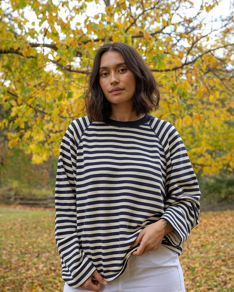 As mentioned in this post from the beginning of the year, I also said my basics were in need of an update. Okay To Rest, a Canadian female founded loungewear and basics brand. Everything is ethically produced with OEKO-TEX certified fabrics. As mentioned, I love my long sleeves from them a lot so I’m excited to throw out my raggedy tees and have these! However, my obsession with stripes continues and since navy is new to my wardrobe I also added the navy stripe long sleeve to my cart. I think it will go great with my Souvenir Pant for a monochrome look and stripes are a neutral to me. So basics acquired and stripes acquired.