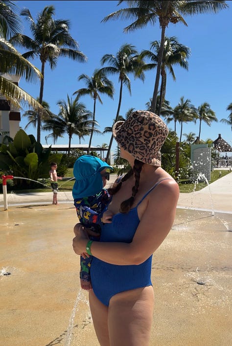 And as promised, since we are in Mexico, here is an update on the swimsuit! I love how low the back is and it is very breastfeeding friendly if you are cool with it coming down instead of up like a bikini top.
