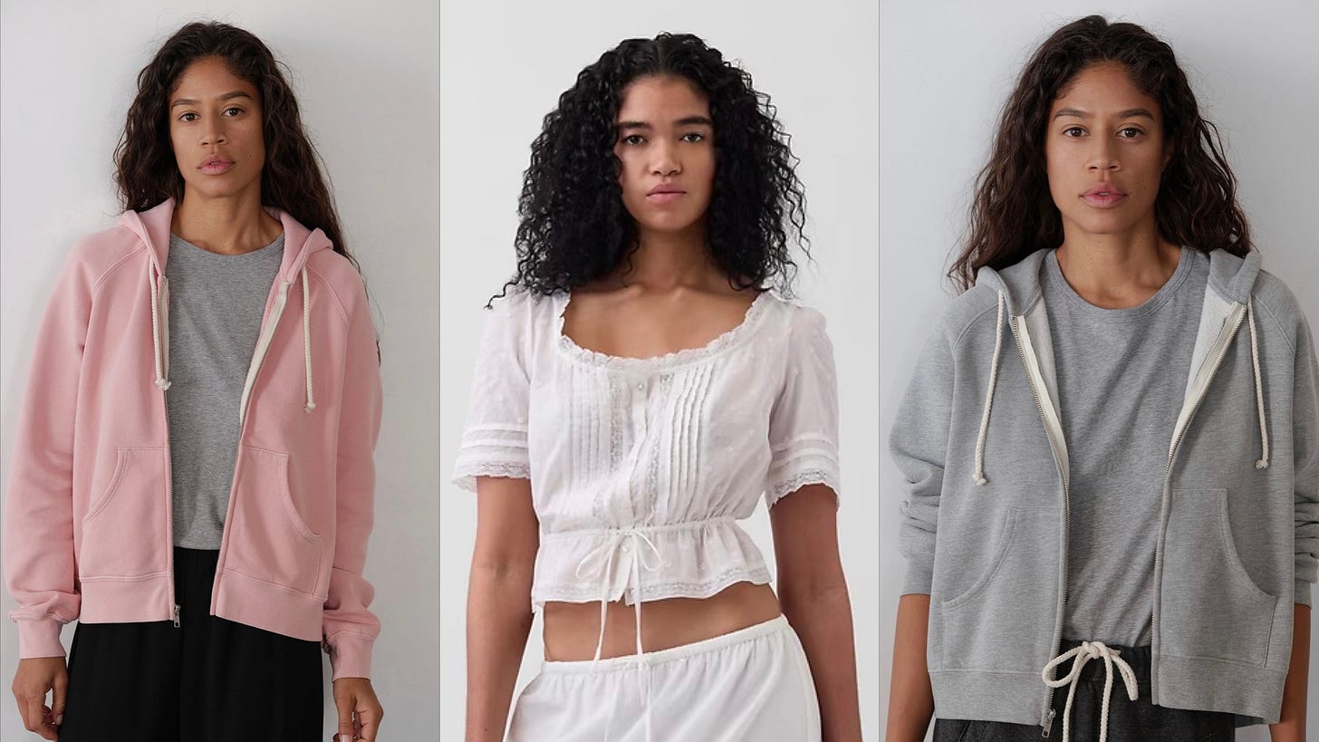 If I could only shop one brand, it would be Donni. This new zip up sweatshirt (the pink is so cutesy but grey for a classic). And this Gap blouse that is giving Doën is reminding me summer is coming. They didn’t quite make it into my cart but are lingering in the brain. I have also been considering simplifying my skincare routine to Ursa Major, with this face wash, this face lotion and this serum, and perhaps an eye cream since I am in my 30’s now.